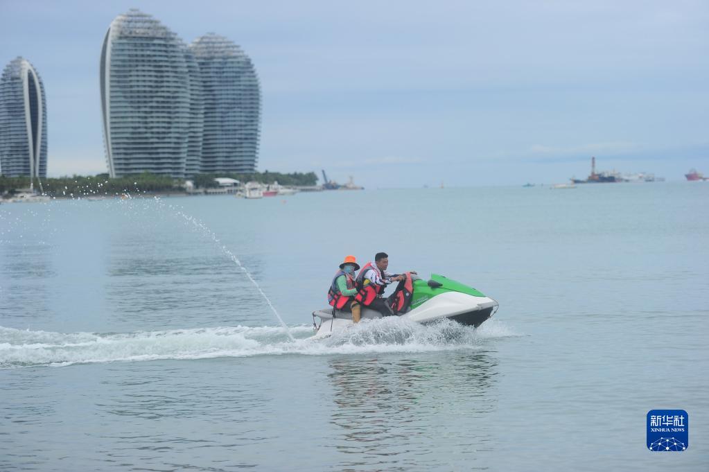5月3日,在海南三亚,游客乘坐快艇出海。