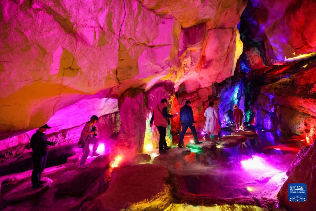 5月3日,游客在贵州省正安县桃花源记景区游玩。