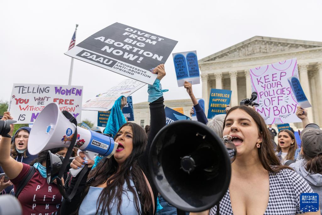 5月3日,在美国华盛顿,支持和反对堕胎权的人们在美国联邦最高法院外集会。