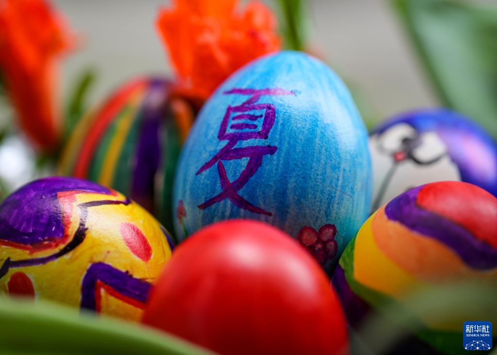 4月29日,贵州省铜仁市玉屏侗族自治县实验幼儿园小朋友和老师制作的“立夏蛋”。