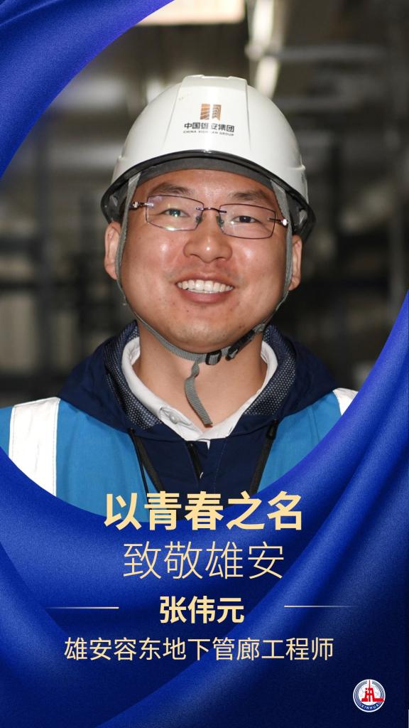 出生于1992年的张伟元是中国雄安集团基础建设公司业务经理,现在负责雄安新区地下综合管廊运营维护,主要内容是运维现场管理、运维制度体系建设、管廊运维筹备管理以及协调保障工作,推动管廊运维制度化、标准化的落实落地。