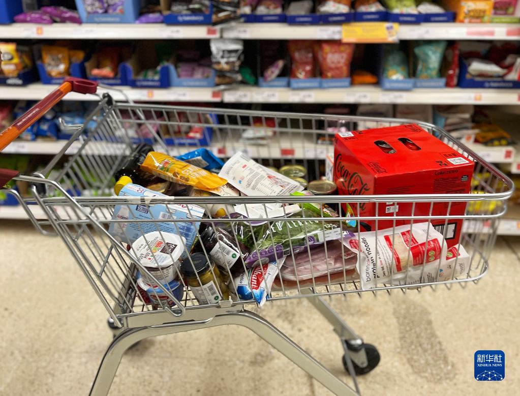 这是5月5日在英国伦敦一家超市内拍摄的购物车。新华社记者李颖摄