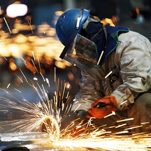 5月7日,在哈电集团哈尔滨汽轮机厂有限责任公司生产车间,工人在生产作业。