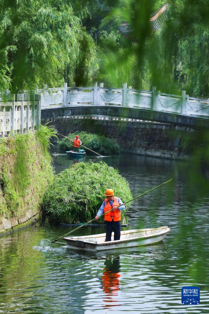 5月7日,工作人员在重庆永川临江河红旗河段清漂。新华社发(刘欢 摄)