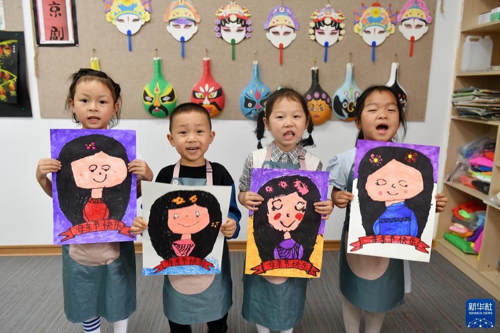 5月8日,湖北省宜昌市秭归县一家素质成长中心的孩子们展示送给妈妈的画作。