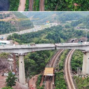 5月9日凌晨,由中铁二局集团承建的广汕高铁跨京九铁路特大桥连续梁成功转体77度,在距京九铁路轨面33.4米的高空中实现精准对接。这标志着广汕高铁打通了最后的“咽喉”要道,为实现按期通车奠定了基础。