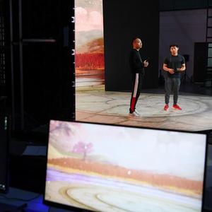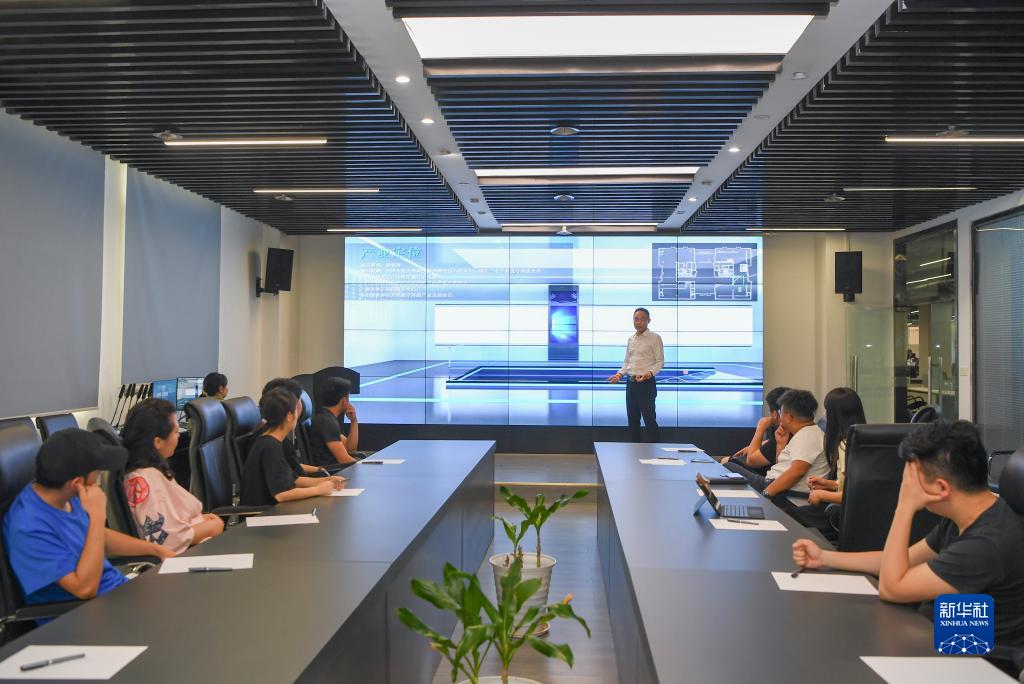5月6日,在位于重庆云谷·永川大数据产业园的达瓦影像科技有限公司,卢琪(中)和同事们一起商讨设计方案。