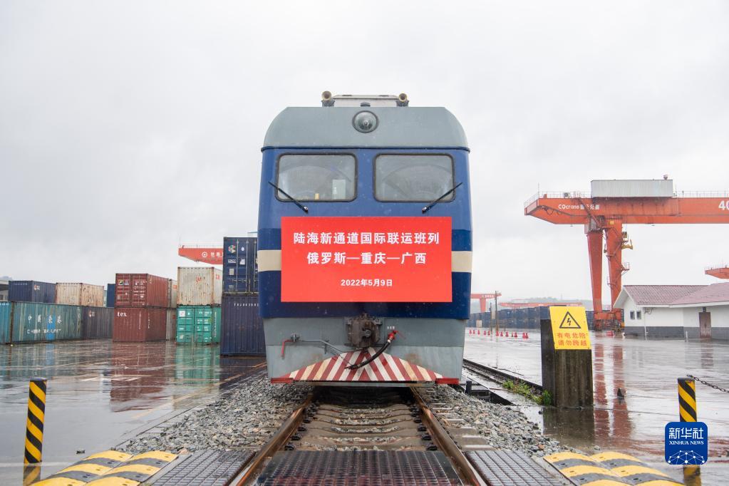 5月9日,陆海新通道国际联运班列(俄罗斯—重庆—广西)首发班列在重庆江津小南垭铁路物流中心等候发车。