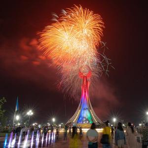 塔什干燃放烟花庆祝“纪念和荣誉日”