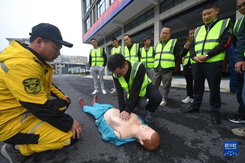 5月10日,在昌化消防中队,昌化镇应急救援队员学习演练心肺复苏急救的基本步骤。