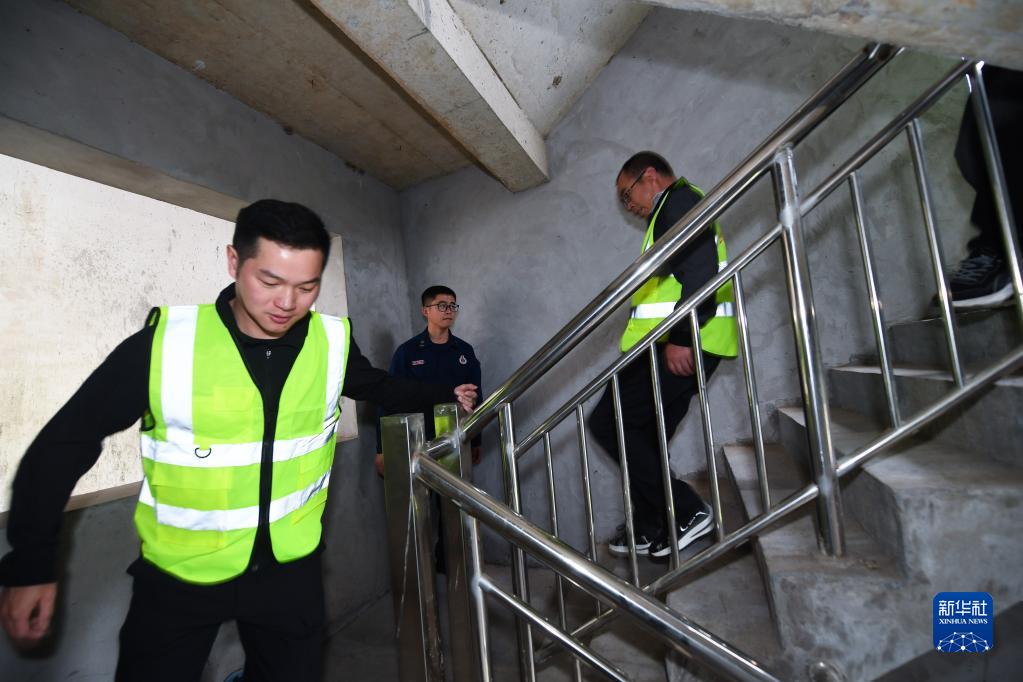 5月10日,昌化镇应急救援队员在杭州市临安区昌化消防中队的训练楼里进行逃生应急演练。