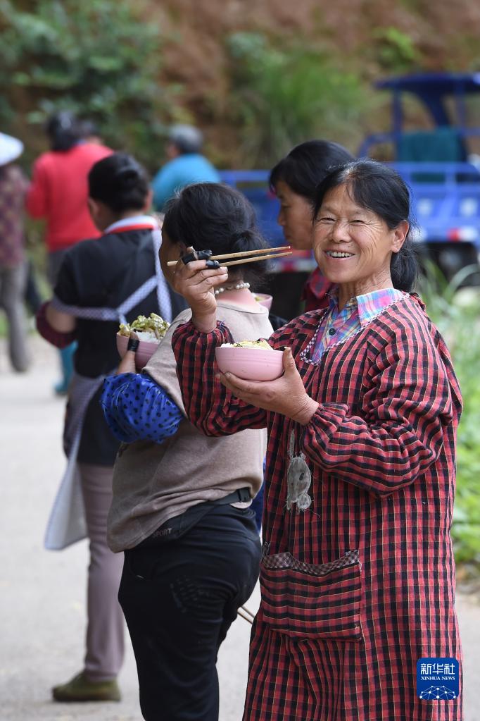 5月7日,在福建省武夷山市吴三地村,采茶工人在路边吃午饭。