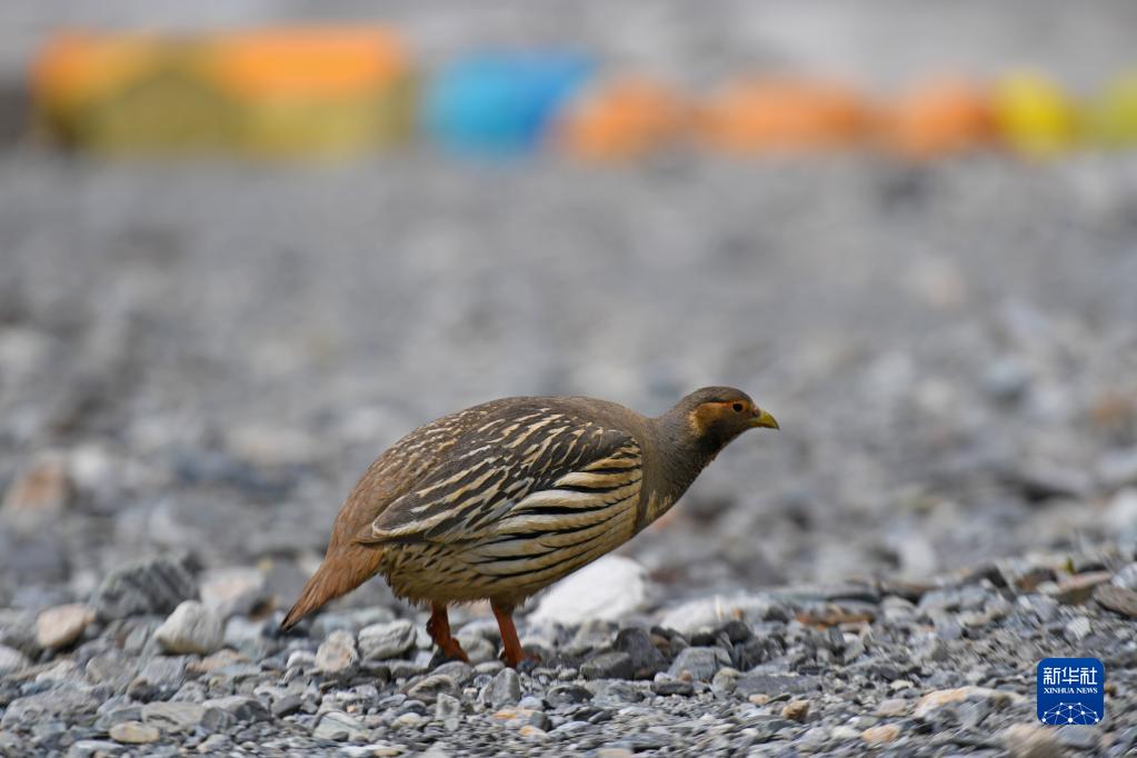 一只藏雪鸡在珠峰大本营附近徘徊(5月9日摄)。