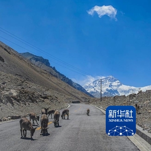 来自北京大学环境科学与工程学院的张毅便是其中一员,她和同学们在前往珠峰大本营的路上,不得不停车等候,向一群岩羊借路——在巍峨的珠峰前,岩羊在路中间缓慢行走,姿态悠闲。搭载着科考队员的大巴车,就这样默默等着“横在路中”的岩羊群走过,人们一个个按捺不住,拿出手机,为这群平时只能在纪录片里看到的“高原精灵”留影。
