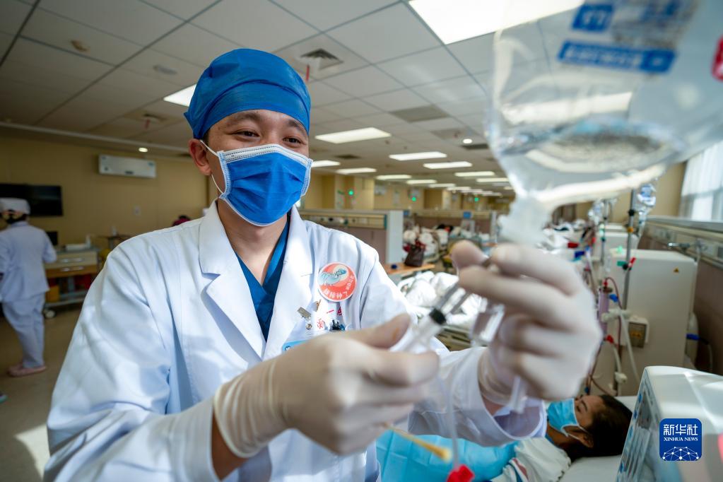 5月10日,赵健华在病房给患者输液袋中注射药物。