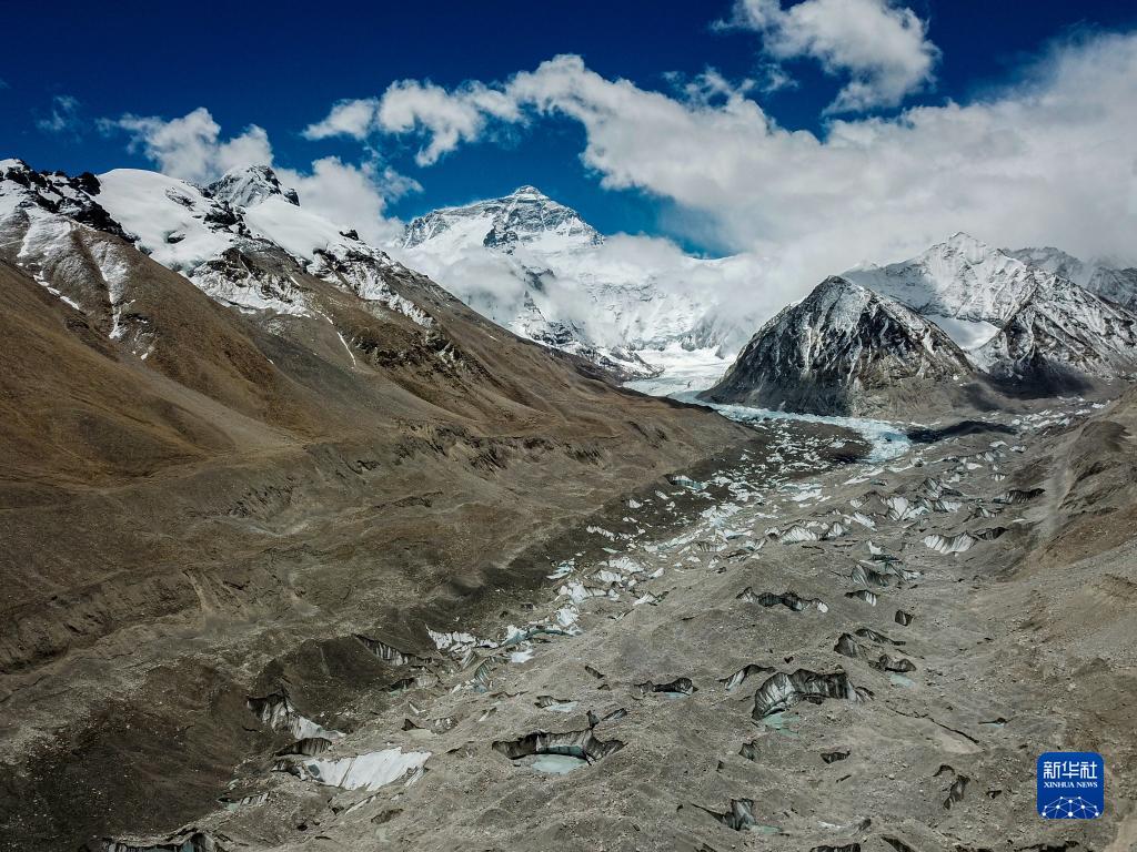 珠穆朗玛峰脚下的东绒布冰川(5月8日摄,无人机照片)。