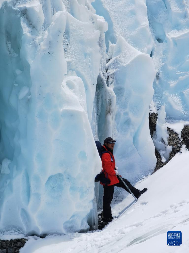“巅峰使命”珠峰科考中,中国科学院西北生态环境资源研究院研究员康世昌负责的冰川与污染物小组在东绒布冰川海拔6350米以上区域利用先进的仪器,对冰川进行精准测量。