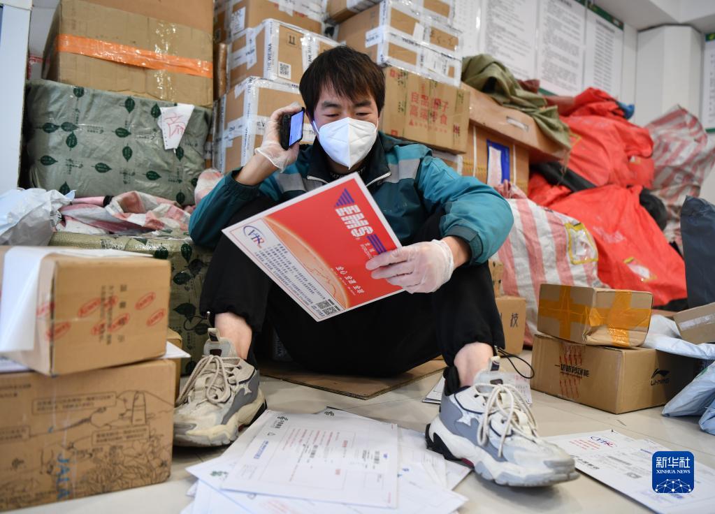 5月10日,在郑州市邮政分公司花园路揽投部,工作人员在联系客户。