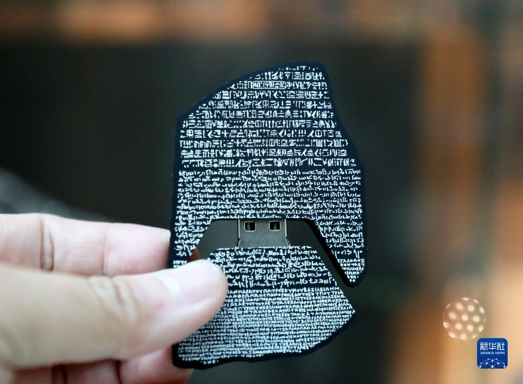 这是5月11日在英国伦敦大英博物馆拍摄的以藏品罗塞塔石碑为灵感的文创产品。罗塞塔石碑上刻有三种铭文,文字学家凭借这些铭文破译了古埃及象形文字的秘密。