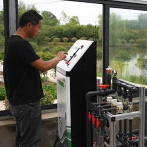 5月12日,工作人员在合肥市肥西县花岗镇现代农业示范区一蔬菜种植基地操作智能水肥一体机。