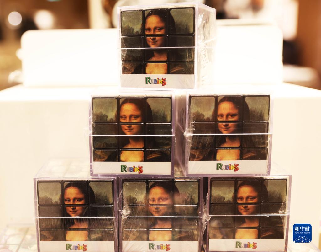这是5月11日在法国巴黎卢浮宫官方纪念品店拍摄的有蒙娜丽莎形象的魔方。