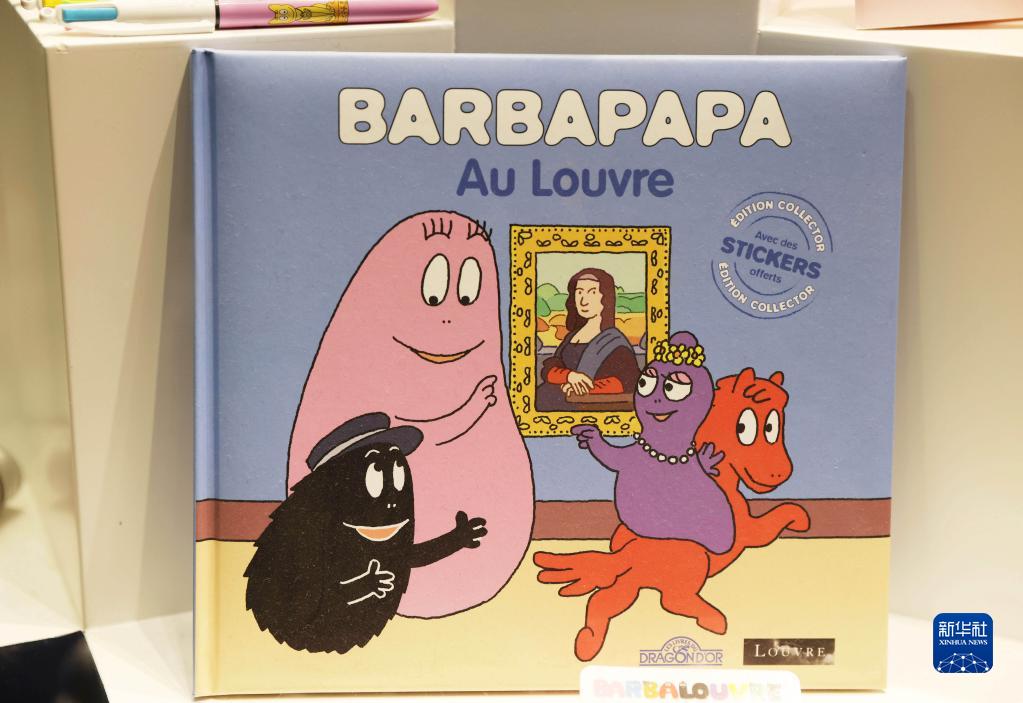 这是5月11日在法国巴黎卢浮宫官方纪念品店拍摄的法国著名动画片《巴巴爸爸》中的人物与卢浮宫系列儿童读物。