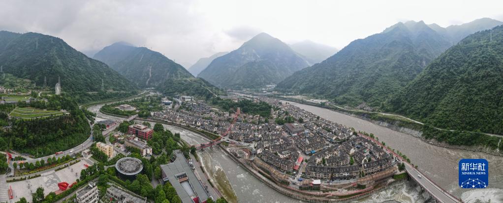 这是5月12日拍摄的汶川县映秀镇一角(无人机全景照片)。