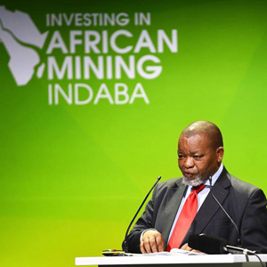5月9日,在南非立法首都开普敦,南非矿产资源和能源部长格韦德·曼塔谢在非洲大型矿业投资会议上发言。
