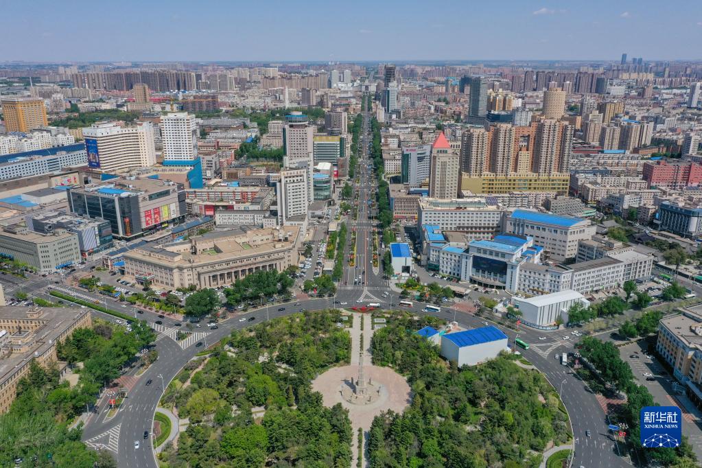 5月12日拍摄的长春市人民广场附近街景(无人机照片)。