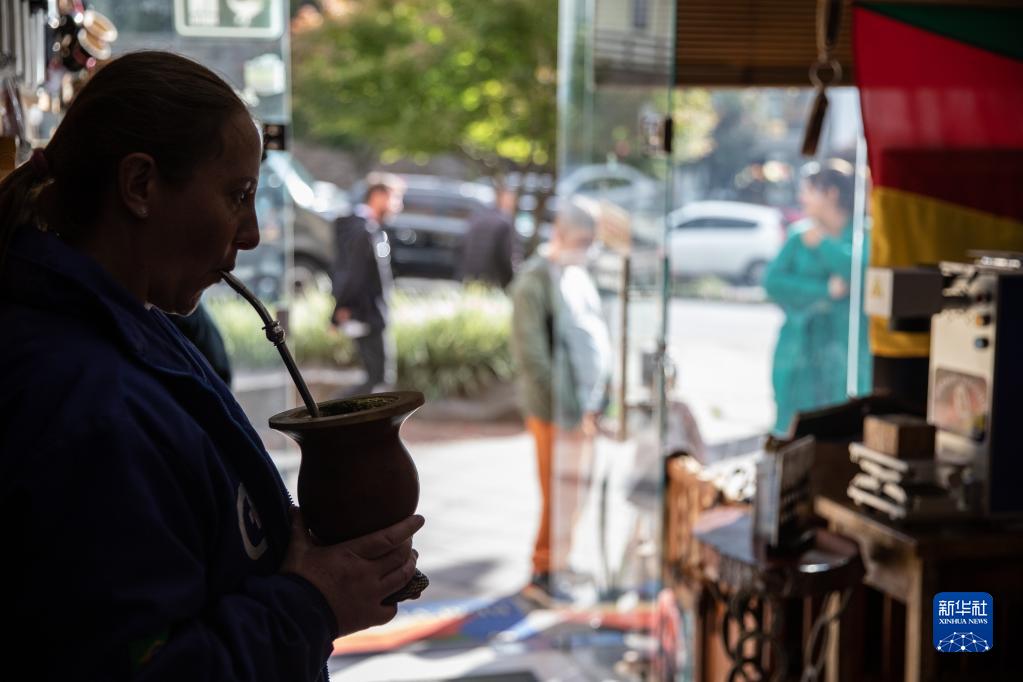 5月12日,在巴西南大河州格拉马杜,一名女子享用马黛茶。