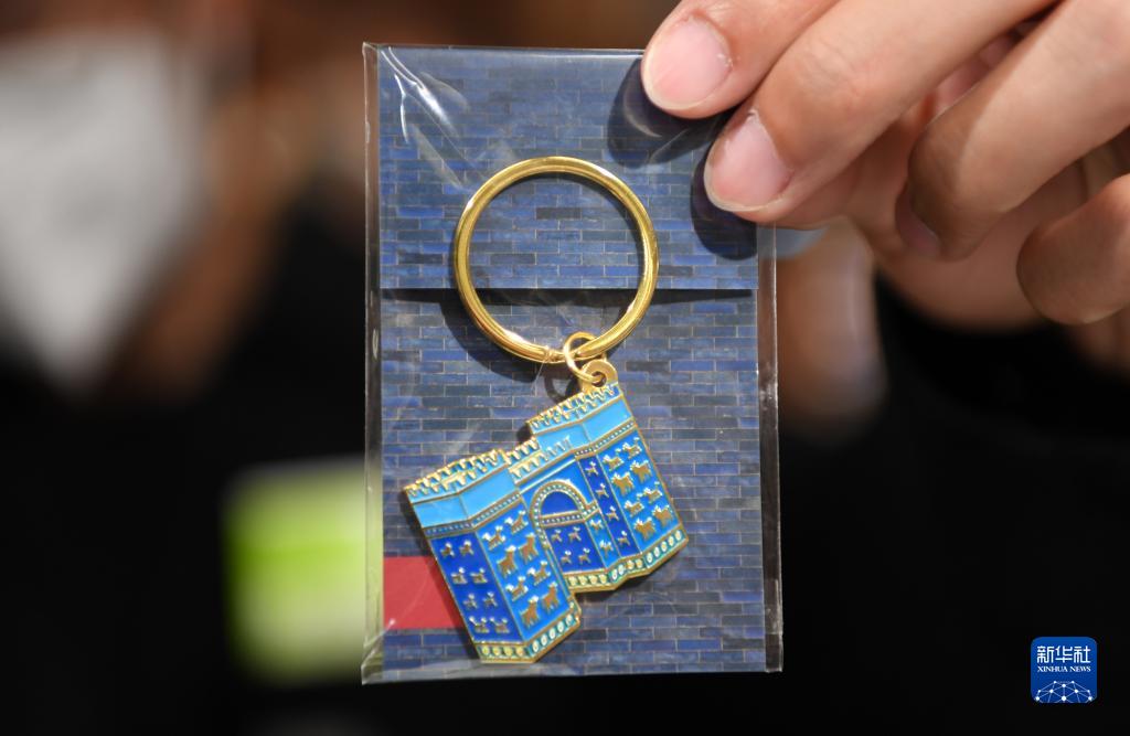 这是5月12日在德国柏林佩加蒙博物馆拍摄的伊什塔尔城门造型的钥匙扣。