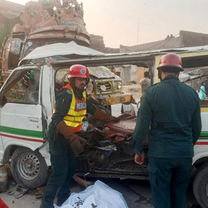 巴基斯坦东部旁遮普省古杰兰瓦拉地区13日发生一起翻斗车与客车相撞事故,已造成12人死亡、10人受伤。