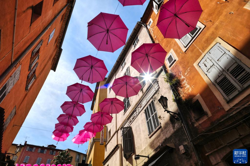 这是5月13日在法国南部小城格拉斯拍摄的街头美景。