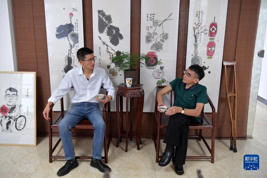 在位于江西省赣州市的工作室内,罗琪(右)在和徒弟交流聊天(5月10日摄)。新华社记者 彭昭之 摄