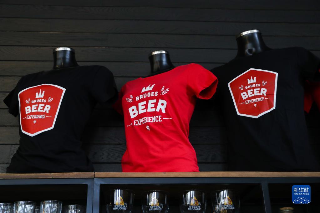 这是5月13日在比利时布鲁日的“啤酒体验”博物馆商店拍摄的文创产品——短袖上衣。