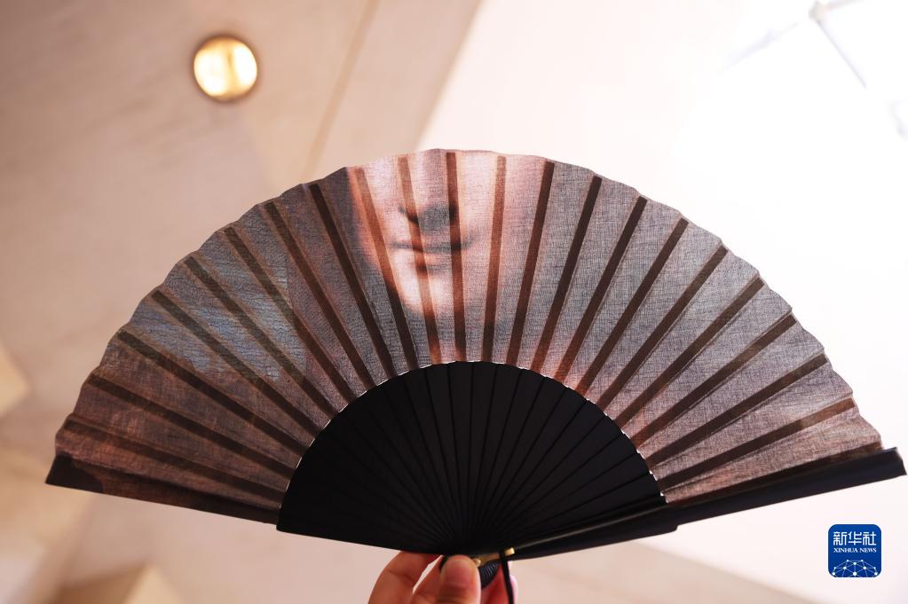 这是5月11日在法国巴黎卢浮宫官方纪念品店拍摄的印有蒙娜丽莎形象的扇子。