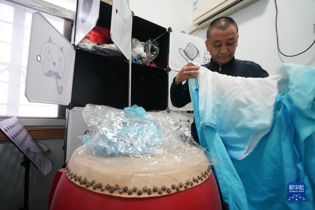 5月10日,在南京玄武九洲残疾人文化艺术中心,朱光俊在整理演出服装。