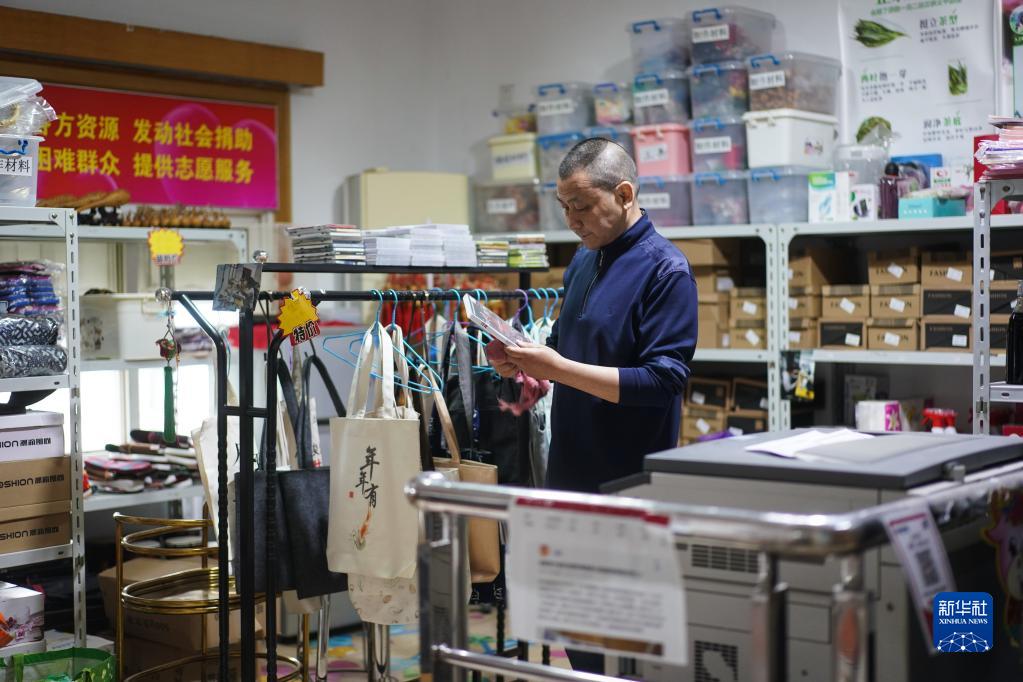 5月10日,在南京玄武九洲残疾人文化艺术中心,朱光俊在打理“慈善超市”。