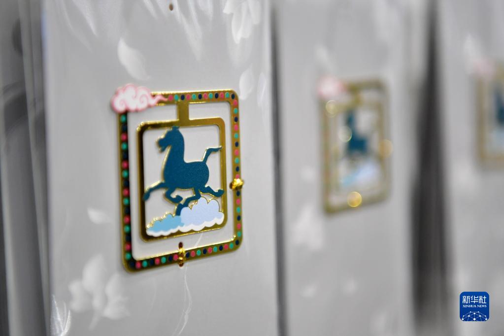 这是在甘肃省博物馆文创商店拍摄的铜奔马元素的书签(5月13日摄)。