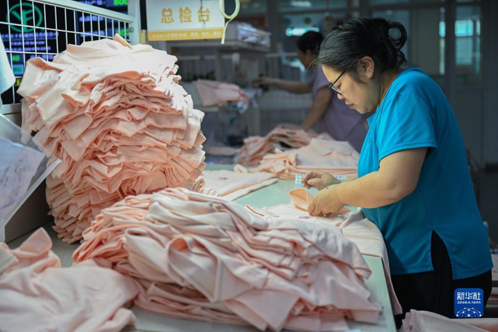 5月13日,在福建省晋江市卡尔美运动服装生产车间,工人在赶订单。
