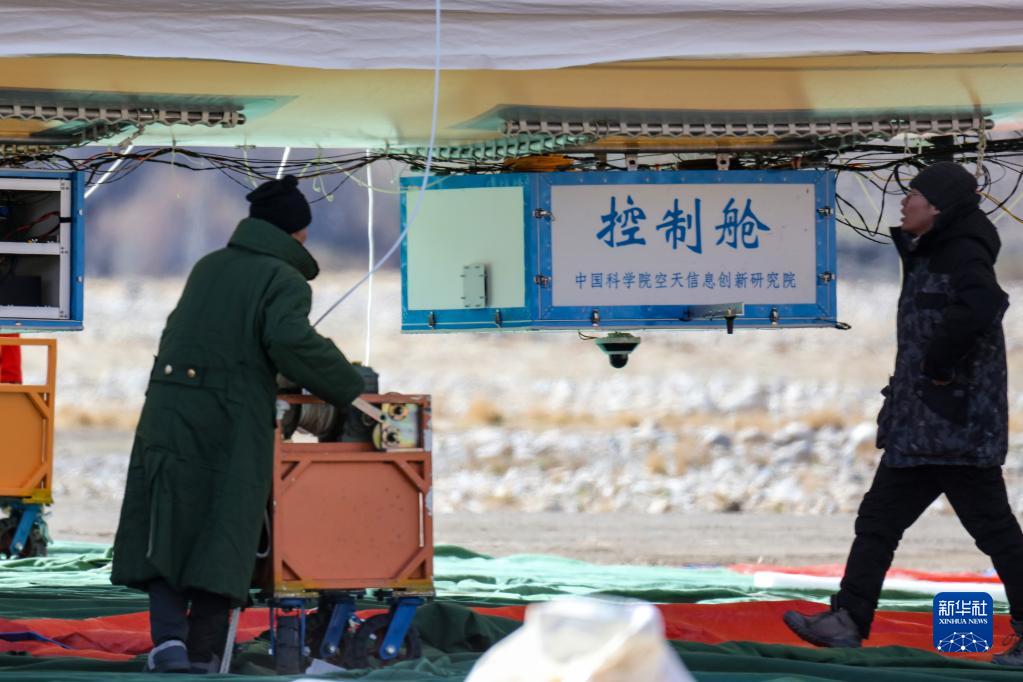 科考队员为“极目一号”Ⅲ型浮空艇加装载荷(5月12日摄)。