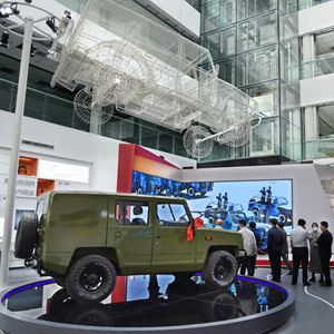 观众在北京汽车制造厂汽车博物馆参观(5月13日摄)。