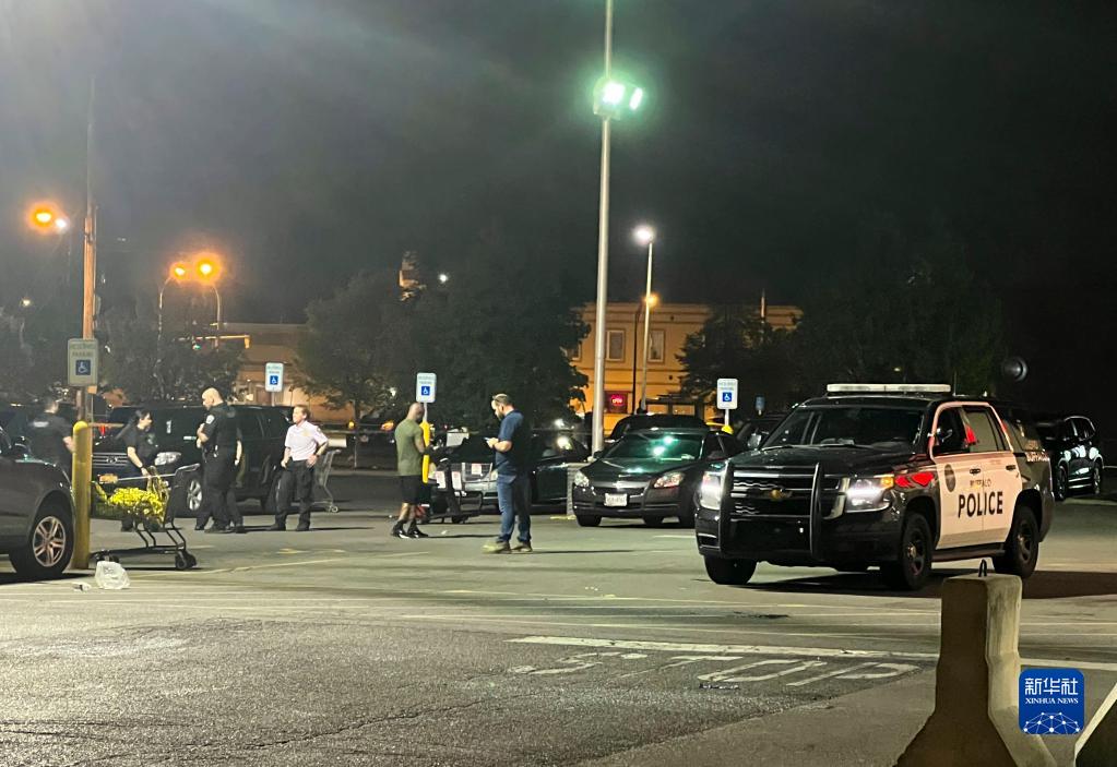 5月15日凌晨,警察在美国纽约州布法罗市的枪击案现场工作(手机拍摄)。