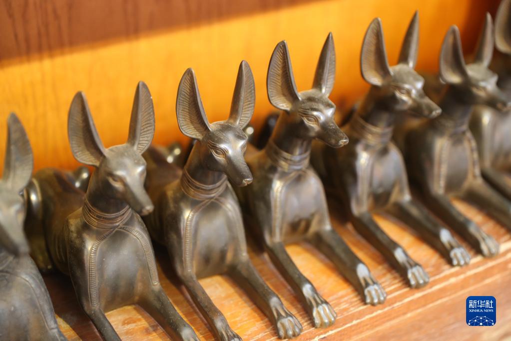 这是5月14日在位于埃及开罗的埃及博物馆纪念品店拍摄的图坦卡蒙墓中出土的“阿努比斯”文创产品。