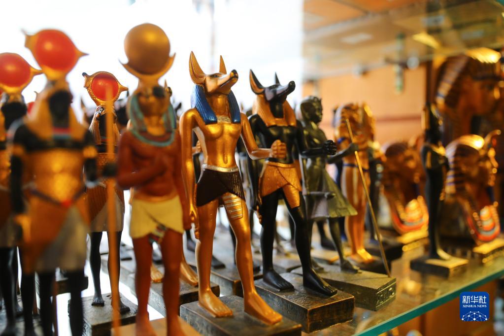 这是5月14日在位于埃及开罗的埃及博物馆纪念品店拍摄的“阿努比斯”雕像文创产品。