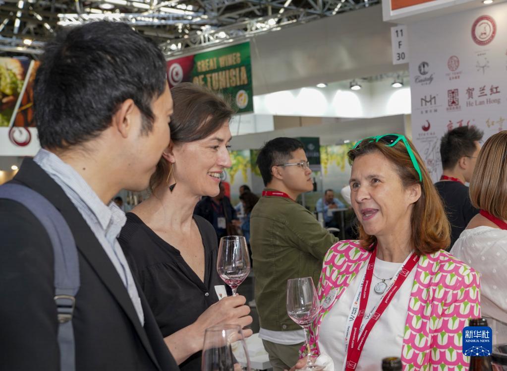 5月15日,参会者在德国杜塞尔多夫国际葡萄酒与烈酒展览会上品鉴宁夏贺兰山东麓葡萄酒。