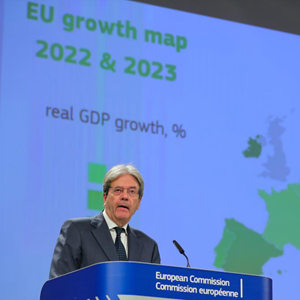 欧盟委员会16日发布2022年春季经济展望报告说,由于俄乌冲突影响,该委员会决定下调今明两年欧盟经济增长预期。新华社记者 郑焕松 摄
