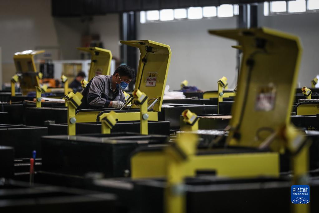 4月28日,新松机器人自动化股份有限公司的工作人员在生产车间内进行机器人的组装工作。新华社记者 潘昱龙 摄