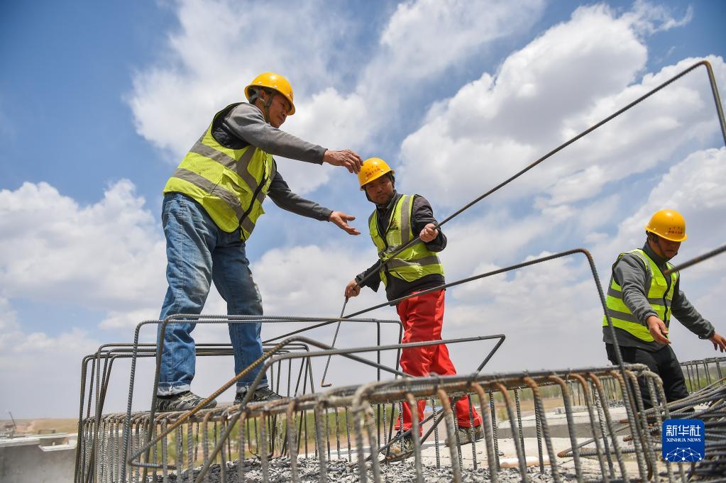 5月17日,中铁十九局工人在集大原高铁内蒙古段施工现场工作。