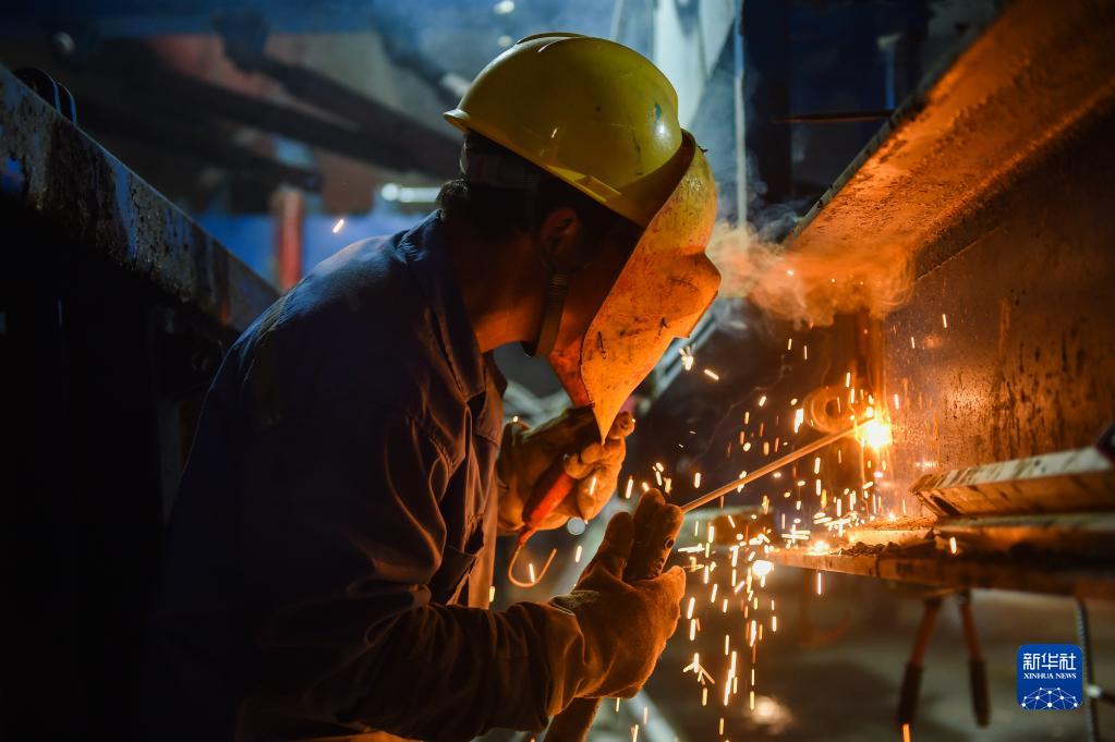 5月17日,工人在集大原高铁内蒙古段的一处隧道内施工。